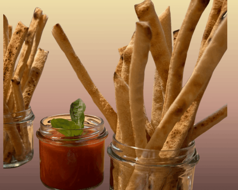 Fins bâtons de pâte à pizza et sa sauce péquillos