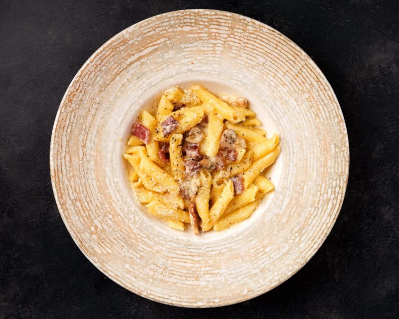 Penne, Marsala, jambon de parme, champignons bruns, parmesan